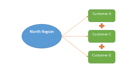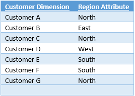 EPM solutions accomplish this using various methods. Dimensions and attributes are features that allow a further analysis by organizing and classifying the data in accounts or measures. The diagrams below illustrate how a dimension like Customer can be viewed from a different perspective by grouping individual customers into an attribute named Region. By choosing a Region, you choose the Customers in that Region. Calculations and reporting may then be performed at the group or detail level by choosing Customer, Region, or both.