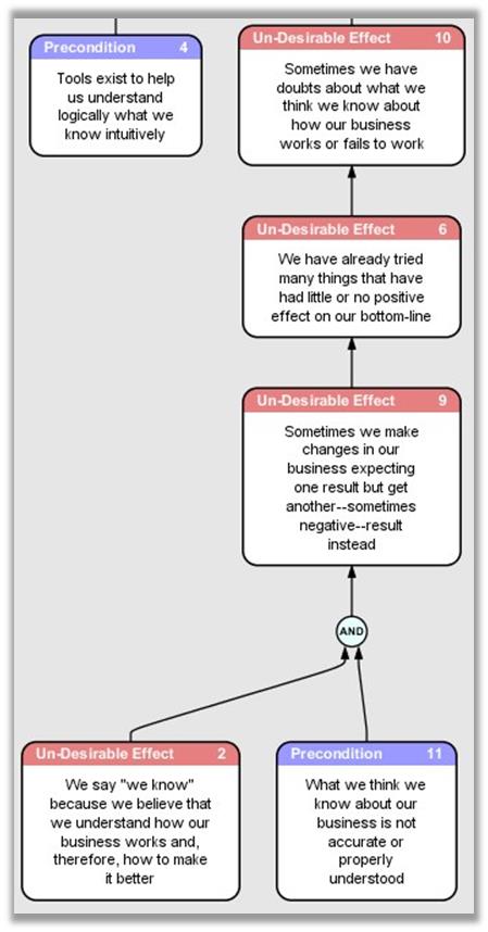 My experience tells me that the Current Reality Tree (CRT) excerpt in the accompanying diagram gets the most votes.