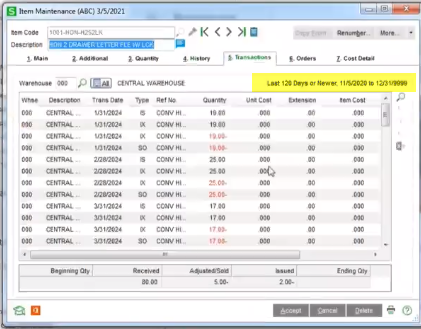 Sage Software released the 2021 edition of Sage 100 earlier this month. Included are a number of long-awaited requests. Many of these were listed on the Sage 100 Idea Site, where you get to request new features in Sage 100. Inventory transactions and item history is the second feature we think makes a difference in the latest release. We think the PO Clearing Feature can also make an impact!