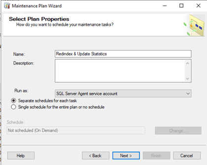 - Each of these tasks can be created easily and put on a schedule within your SQL Server. In SQL Server Management Studio > Management >, Maintenance Plans. Right click on Maintenance Plans and select “Maintenance Plan Wizard” to begin setting up.