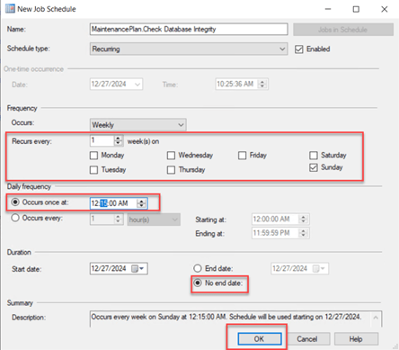 NOTE: It’s recommended to have the tasks run by themselves once a week. Example would be