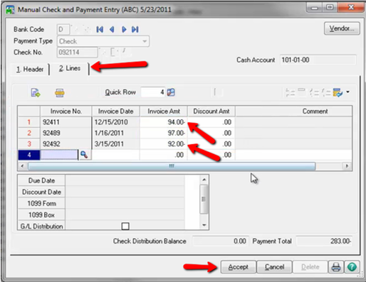 Click Accept, print the Manual Check Register, and Update Check Register.
