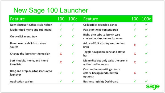 Sage 100c has been given an updated look and feel with a modernized user interface and will be the platform of choice for the vast majority of future features and functionality moving forward. Both Sage 100 and Sage 100c share the same code base and database architecture. Features and functionality are available based on whether your license is for Sage 100 or Sage 100c.