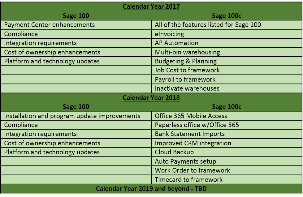 Sage 100 and Sage 100c features that were released during calendar year 2016.
