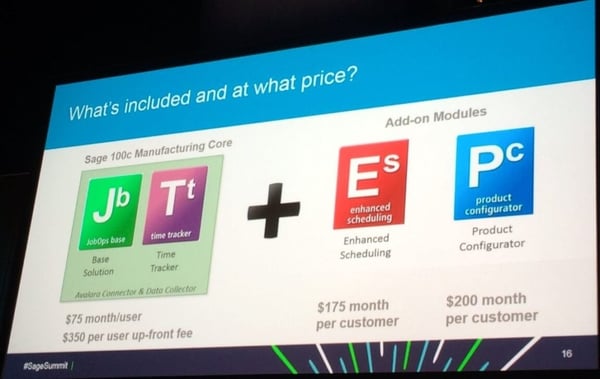 For customers on Sage 100c wanting to purchase the Manufacturing module, the Core Product will include what was formally called "JobOps Base Module" and the "Time Tracker Module". An additional purchase is required for Scheduling, Configurator and Field Service.