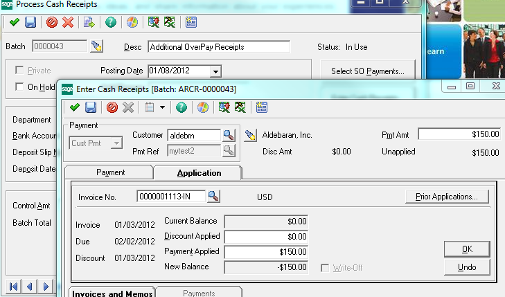 In the original post I closed out by saying it would be nice to be able to post a second payment against the same invoice even though the balance was already < 0. It turns out this does exist it just did not work as I thought it would so I missed it. I apologize for the oversight but in this post I detail this newfound information for you.
