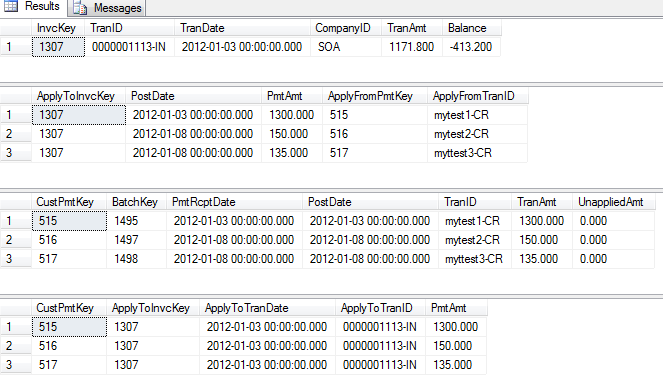 SELECT ApplyToInvcKey, PostDate, PmtAmt, ApplyFromPmtKey, ApplyFromTranID