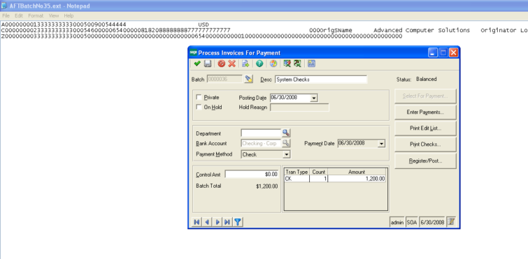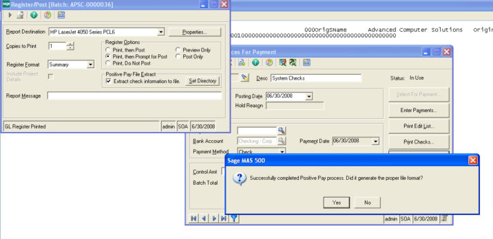Cannot generate Positive Pay File after Post in Sage 500