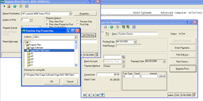 Setting up Positive Pay in Sage 500