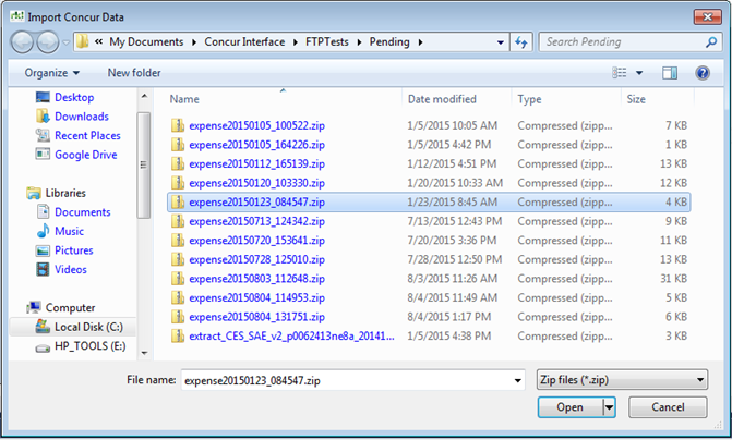 Browse to the file that was downloaded, and double-click to import it. Files can be in a .txt format or a .zip format.