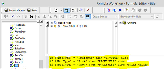 - Instead of creating multiple forms/reports, create a controlled parameter within the report to prompt the user at run time for what document type they want: Proforma Invoice, Picklist, Packlist.