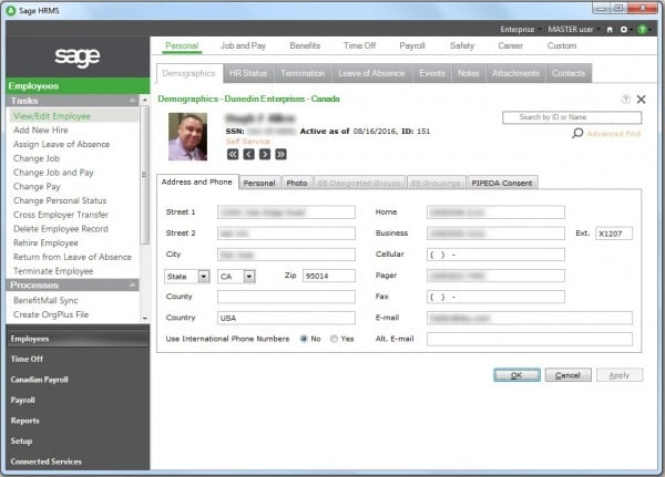 With loads of pre-configured reports on Employees, Time Off, Payroll, Compliance, Training, and system/audit trails, Sage HRMS probably has a pre-formatted report to meet the basic needs of most companies. Simply navigate to the reports section, select a report group (i.e. Employees, Time Off, etc.), highlight the specific report you want, define the report criteria (by date, employee, etc.), and then print, preview on-screen, or export the data.