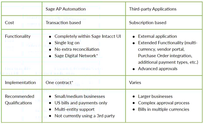 While Sage Intacct's new AP automation feature offers many benefits, it may not be the perfect fit for every business. In some cases, third-party applications may be a better solution. That's why it's essential to read our AP automation comparison chart to determine which option is best for your specific needs.