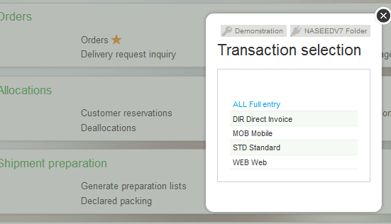 Once the above setup is completed, the Direct Sales Order entry screen can be selected from the sales order transaction screen in Sage X3. This is a fabulous method to help keep direct orders isolated from regular orders.
