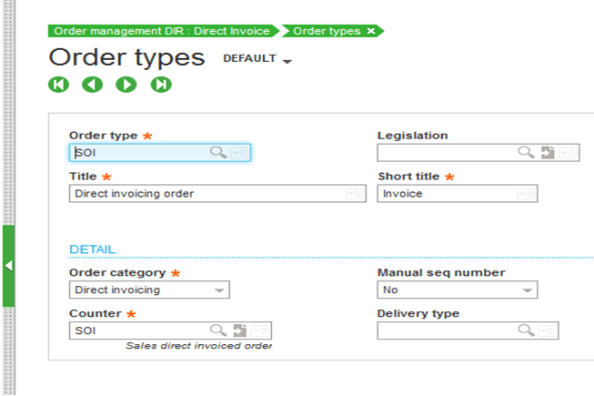 Setup – Direct Sales Order Type and Direct Sales Invoice Type:
