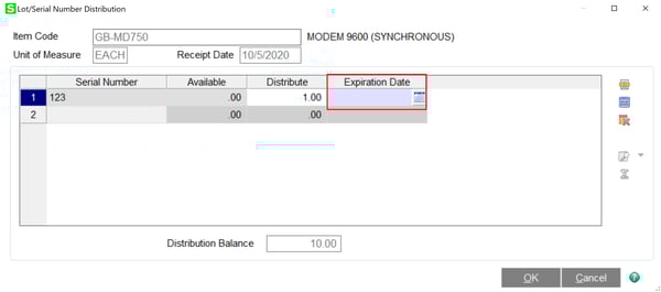 If the user does not have permission and chooses a serial/lot item with an expired date, they will receive this message within the Lot/Serial Distribution screens.