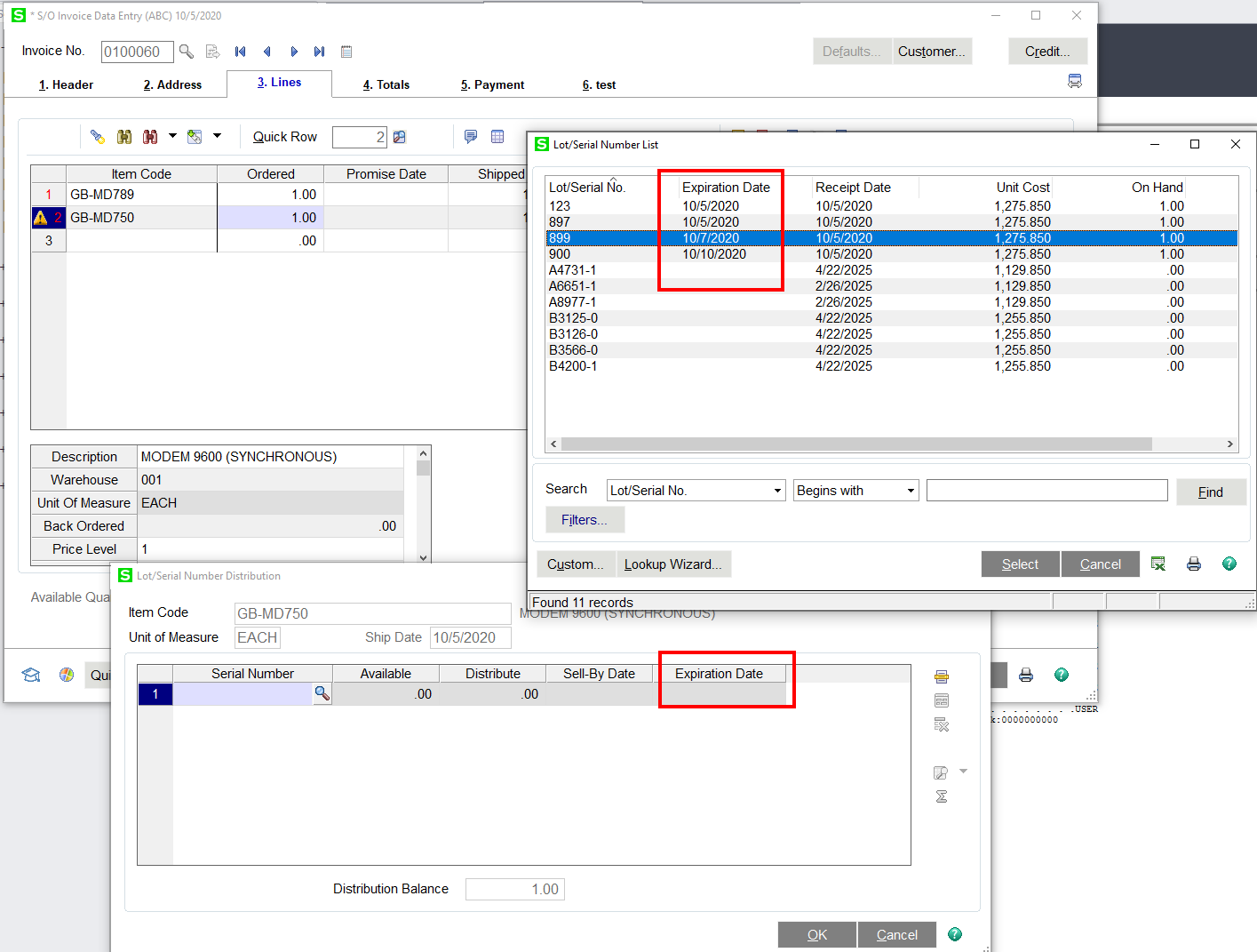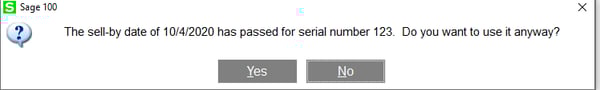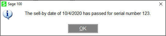 If the user has permission and chooses a serial/lot item with an expired date, they will receive this message within the Lot/Serial Distribution screens.