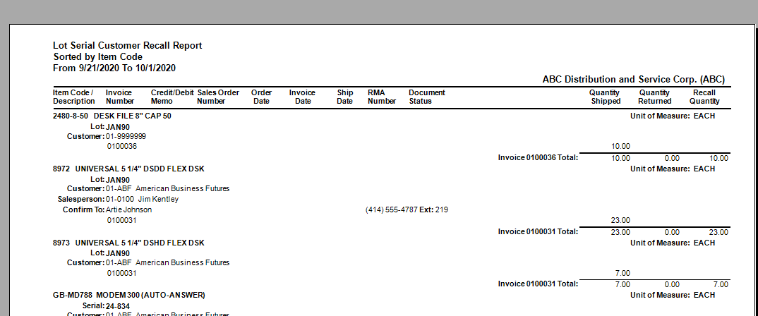 Lot Serial Customer Recall Report – Cannot be used in Sage Task Scheduler