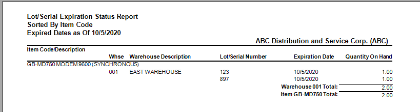 Lot and Serial Expiration Status Report – Can be used in Sage Task Scheduler to run