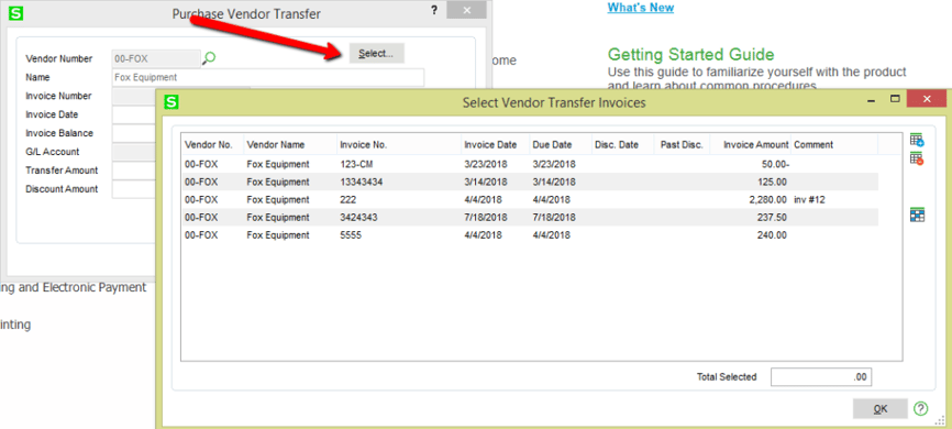 This blog was written in response to a question posted on a recent blog How to Settle a Vendor Invoice Paid by Credit Card in Sage 100. The follow-up question was - Is there a way to select multiple invoices for the same vendor when moving it to the credit card vendor invoice, in the Purchase Vendor Transfer window?