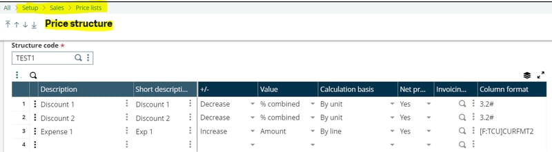 Review below how the custom discounts and charges (expenses) influence the Sales Order pricing from the previous example: