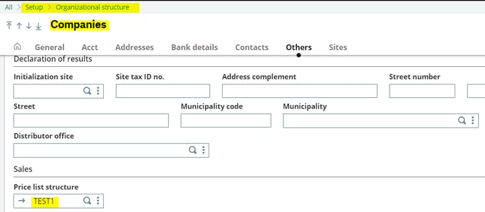 Assign the price structure at the Company level under Setup > Organizational Structure > Companies.