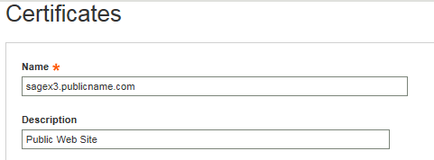 5. In Sage X3, go to Administration, Certificates and create a new certificate using the fqdn you generated the certificate for: