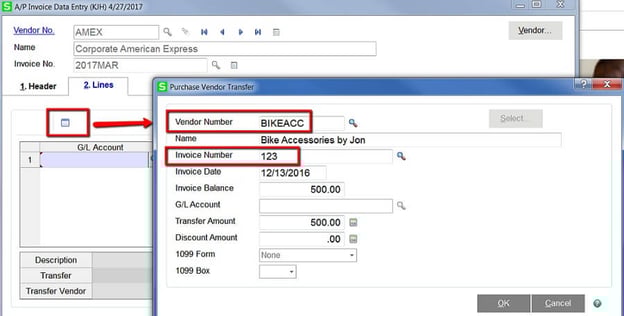 Scenario: We have paid several vendors using our corporate credit card. We have received the statement from our Credit Card Company. We want to mark the vendor invoices as paid and we want to create a payable to the credit card company. This can be accomplished in Sage 100 by transferring the vendor invoices to a Vendor designated as a credit card vendor.