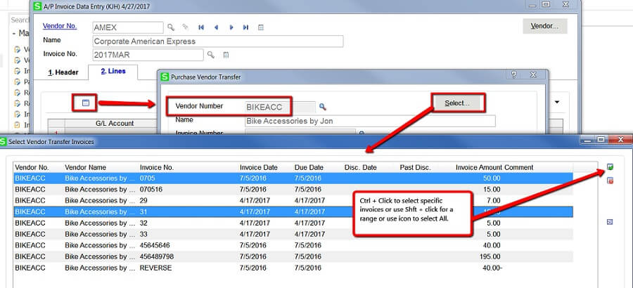 - Alternatively, you can click on Select button to multi-select invoices for this vendor.