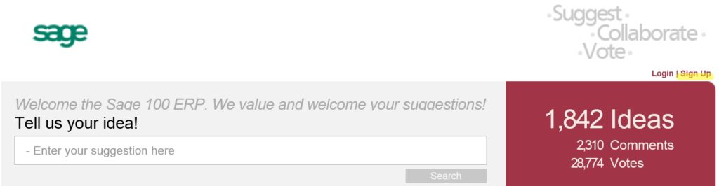 https://www5.v1ideas.com/TheSageGroupplc/sage100erp (Sage 100 ERP)