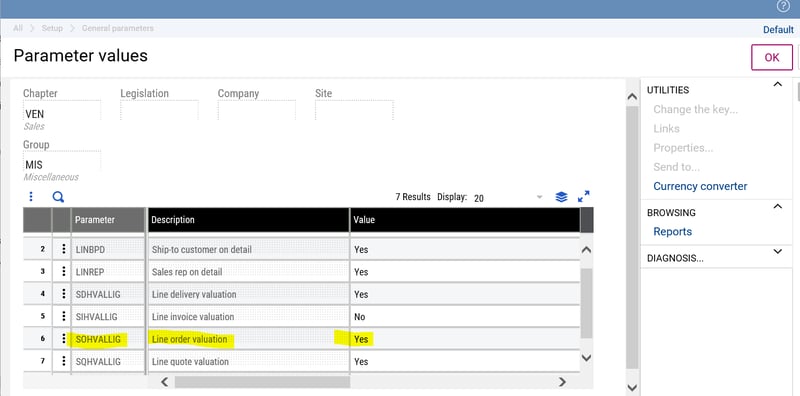 Parameter SOHVALLIG Line order valuation, must be set to YES for this functionality to work.