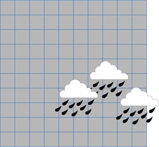 However, since weather has so many variables—many of them unknown (more on that later)—the meteorologists cannot predict precisely which areas of the grid might receive “measurable precipitation.” Given the expected size of the weather system and its general direction, they can “guess-timate” about how much of their forecasting area might be affected by the approaching weather system.