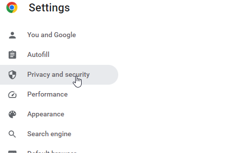 - From the Settings tab, click on "Privacy and Security".