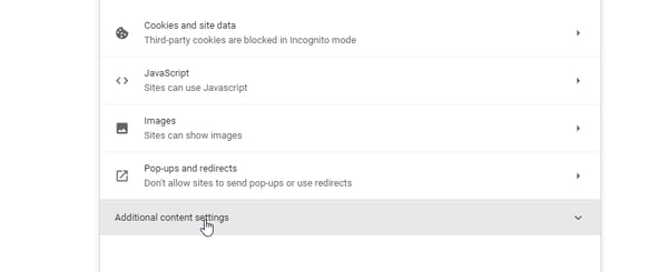 - Then click on "Additional Content Settings".
