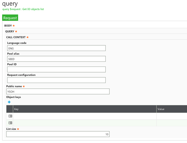 For versions of X3 prior to PU9, the web services tester is accessed from the browser, using the following URL, substituting the X3 server name for x3server.domain. The web services tester must be run from Internet Explorer using the following website http:x3server.domain:28880/root