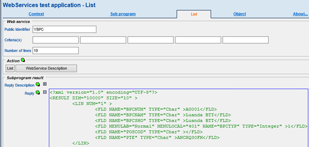The web service can be tested by using the web service tester.