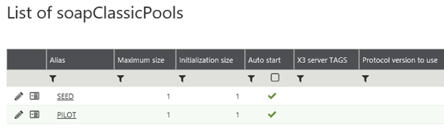 X3 Menu – Administration > ADMINISTRATION > Web Services > Classic SOAP pools configuration