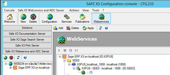 Click "Safe X3 Webservice and ADC Server" to expand the web services section.