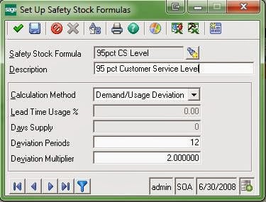 There are some important points to note in using "Deviation" formulas in Sage 500 ERP to calculate Safety Stock. First of all, the "Demand/Usage Deviations" used by Sage 500 ERP are the differences between your "Forecast Demand" and your "Actual Demand,” and not deviations in actual demand from the mean of actual demand/usage. Also, your "Forecast Demand" may include data that could skew the results (e.g., poorly estimated Demand Adjustments).