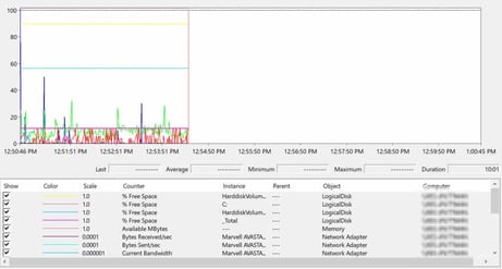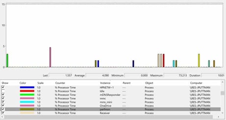 The report option is useful as it shows all the numerical values for all the selected counters. This can be really helpful when you have a lot of counters that you understand at the same time. One nice thing with report view is that you don’t have to worry about adjusting scaling as you do on the line view.