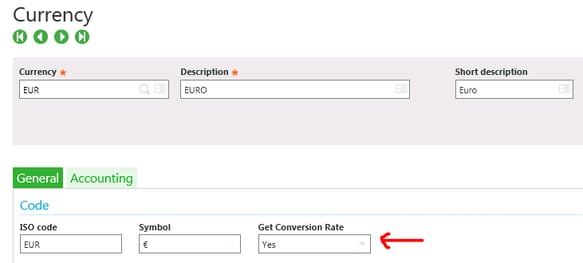 Since X3 has a large list of currencies defined, our integrator includes a field at the currency level to flag currency codes to be retrieved from XE.com. This reduces the amount of currency data that is pulled back from XE.com, and only stores the conversion rates for those currencies that are used in X3. The interface will only retrieve currency rates for those currency codes flagged with “Yes” in “Get Conversion Rate”.