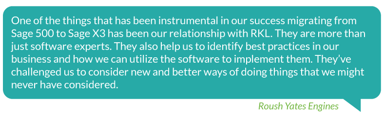 Yes! Sage and RKL eSolutions want to make sure you have the best solution and technology platform to operate your business effectively and profitably. There are automatic discounts and ‘In the Family’ incentives that reward your existing relationship with Sage and RKL. As one of the few remaining Sage 500 partners who also implements Sage X3, RKL has developed a proven migration methodology to make the experience as seamless as possible for your business.