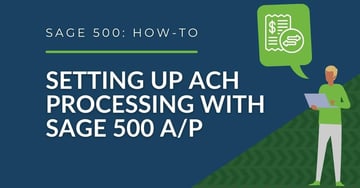 This article is intended as a guide to walk you through the steps of setting up ACH (Automated Clearing House) Payment Processing within Sage 500 ERP. In some of the steps you will need to provide inf...