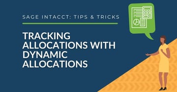 If you’re tracking allocations in a spreadsheet, then Sage Intacct Dynamic Allocations is the perfect solution for you. Dynamic Allocations allows you to pull balances from existing GL accounts and di...